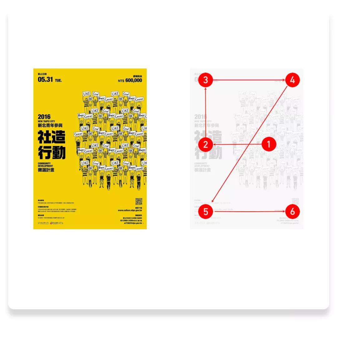 一个版面创建好主次关系后,意味着它具备了最基础的功能,也就是吸引人们的注意力。而当人们的视线被吸引到版面后,信息的传达其实刚刚开始,其余元素需要依托层级关系来引导视线的移动。