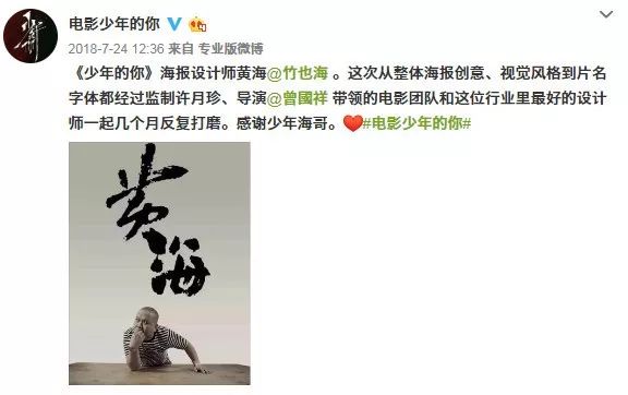 黄海为《少年的你》设计的海报,字体亮眼了!