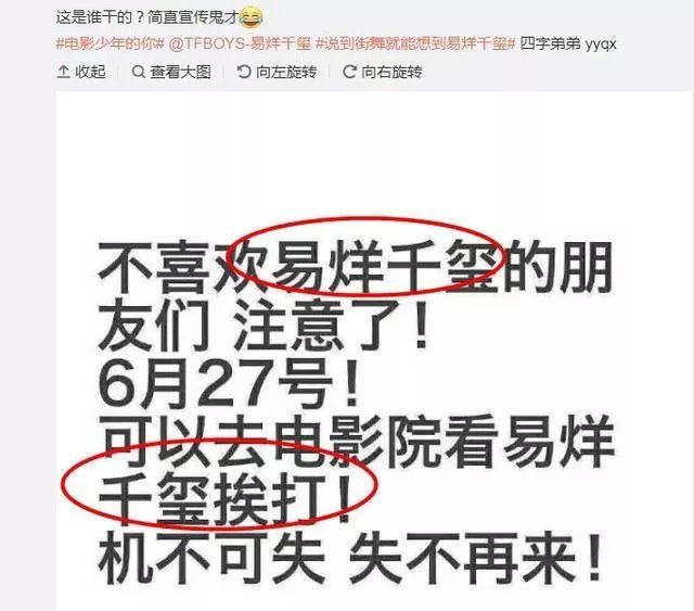 但是,易烊千玺的粉丝宣传文案