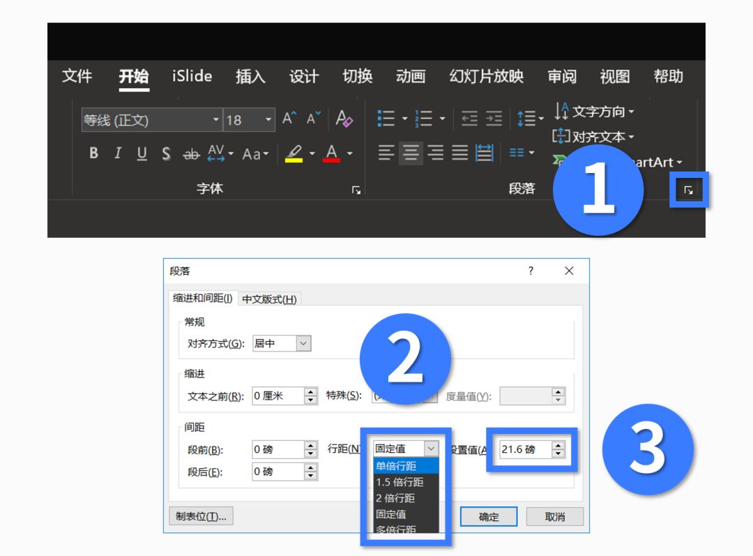 首先,选中文本框,接着点击【开始】-段落菜单栏右下角的【小箭头】-【缩进和间距】,在【行距】那里选择【固定值】,最后在【设置值】那里输入参数即可: