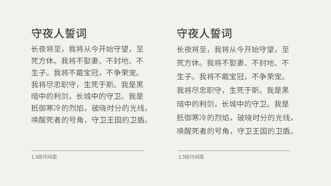 如果你有一大段文字需要排版,并且页面空间足够的话,你可以试试为文字设置高一点的行间距(1.3倍-1.5倍),此时页面看起来会清爽很多:
