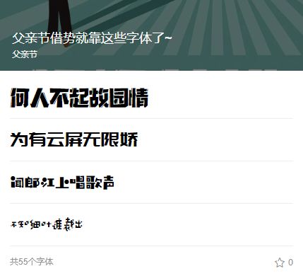 前几天柚子刚传了两张父亲节的字体案例,收藏量就猛增,看来大家对相关字体很有需求啊,毕竟妈妈是正面的爱,而爸爸更多的是背后的爱……