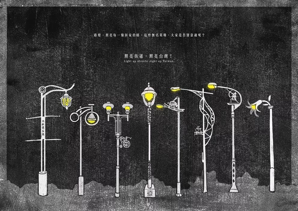 你可曾注意过街道旁的路灯都长得不一样呢?它们为了照亮台湾而默默地伫立着。为了记录全台各地特色路灯,我们实地走访了台湾六十个乡镇,并搭配当地景点绘制成台湾路灯手札,提醒大家抬头看看这些被忽略的台湾之光。