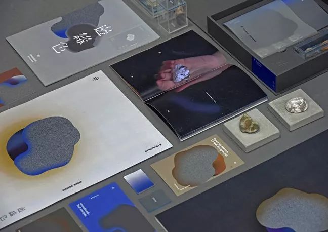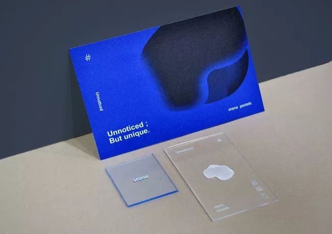 以大地色为出发点,我们收集台湾各处的石头,研磨加工制成粉彩,再造石头的价值。视觉上运用石头轮廓及边缘的发光来呈现平常不被注意却独特的石头,以蓝色为标准色则是希望透过明亮的色光衬托出沉稳而美丽的大地色。