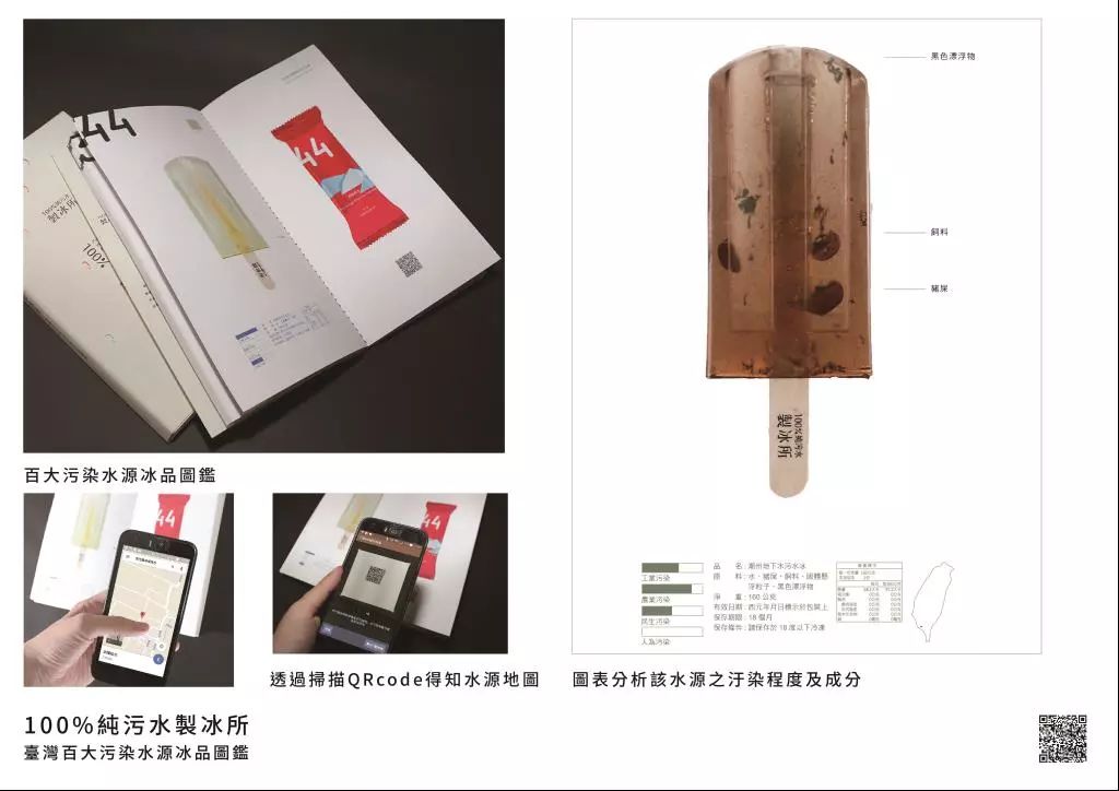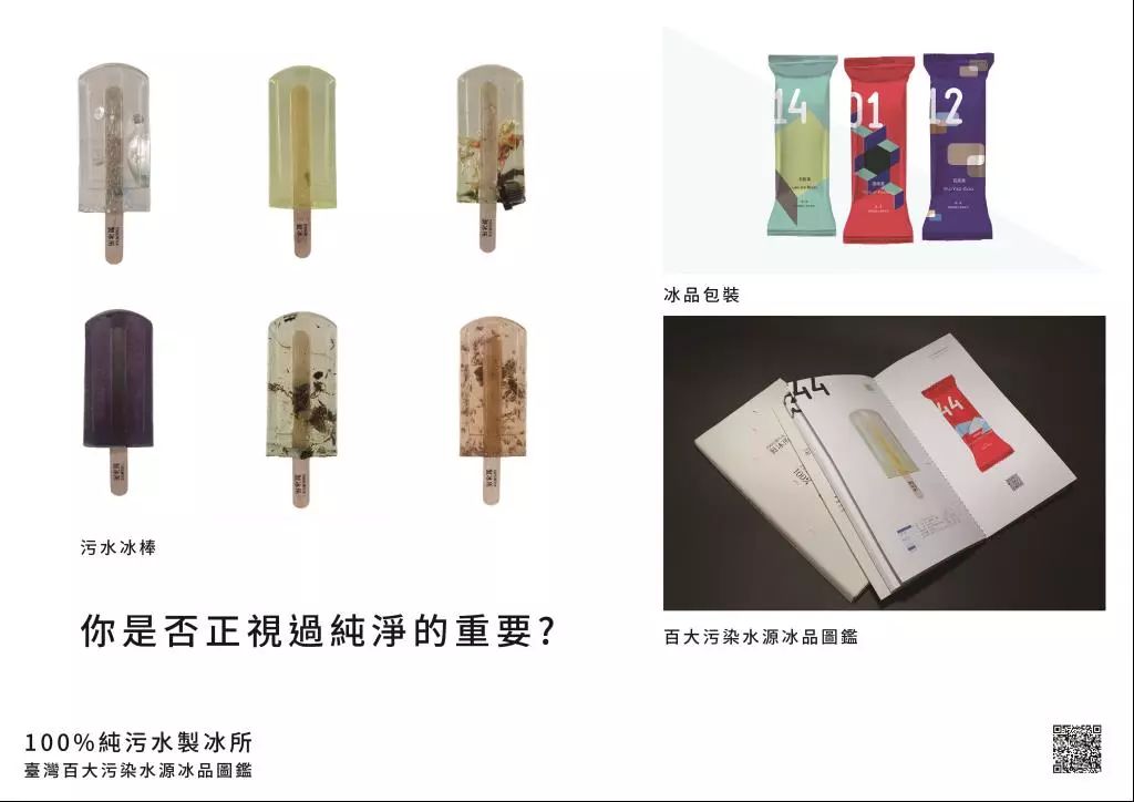 你是否正视过纯净的重要?用受污染的水源制成冰品,透过吸引人的冰棒包装,让人产生想拿起来的欲望,拆开后发现冰棒的构成源于污染的水及恶心的内容物,透过冲击感,传达无污染水对人类的重要性,达到让人省思的目的。