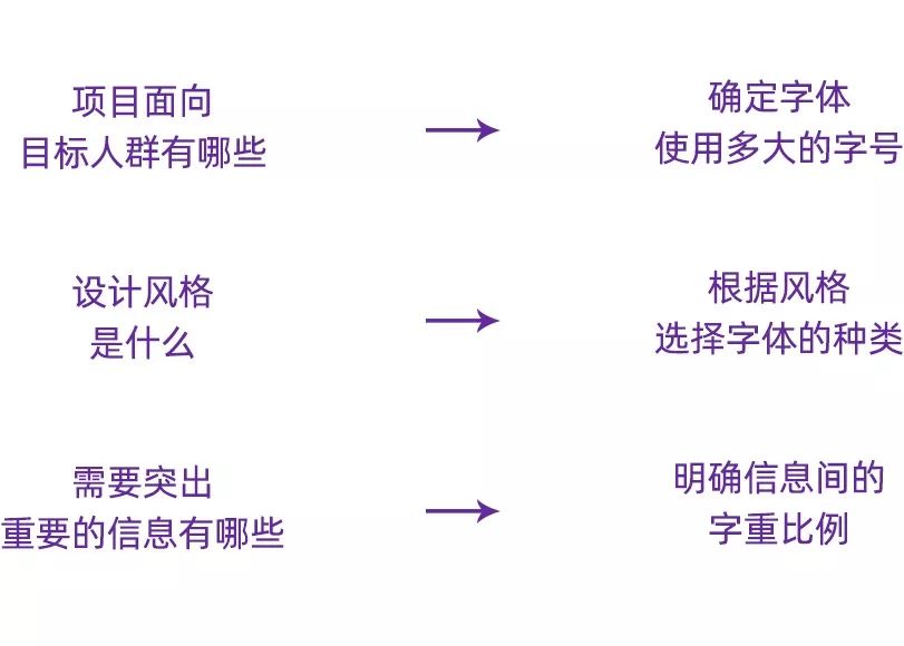 不同种类的字体代表不同的风格样式,是文字的表现形式和风格触感。在项目开始前,我们需要明确设计目的。例如:“项目面向的目标人群有哪些?设计风格是什么?是否需要和其他的设计、品牌相匹配?”等等这些问题。而这些问题将帮助你解决如何选择和使用字体的初步思路。