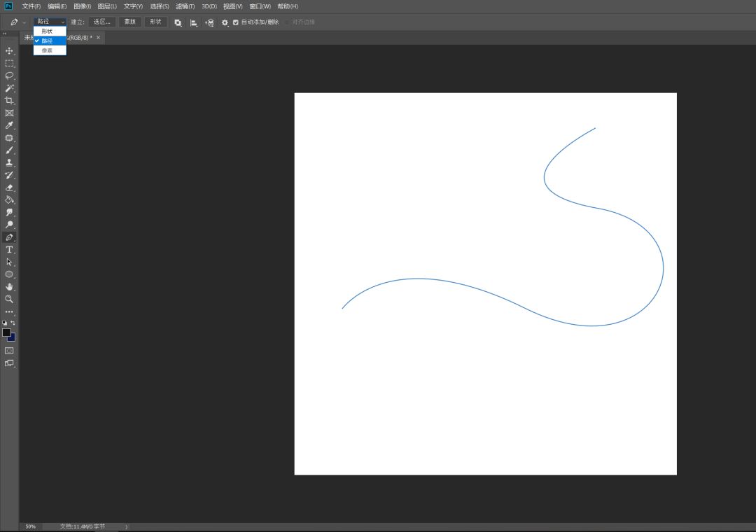 先打开ps,新建一个文档,用钢笔工具画出一条路径。