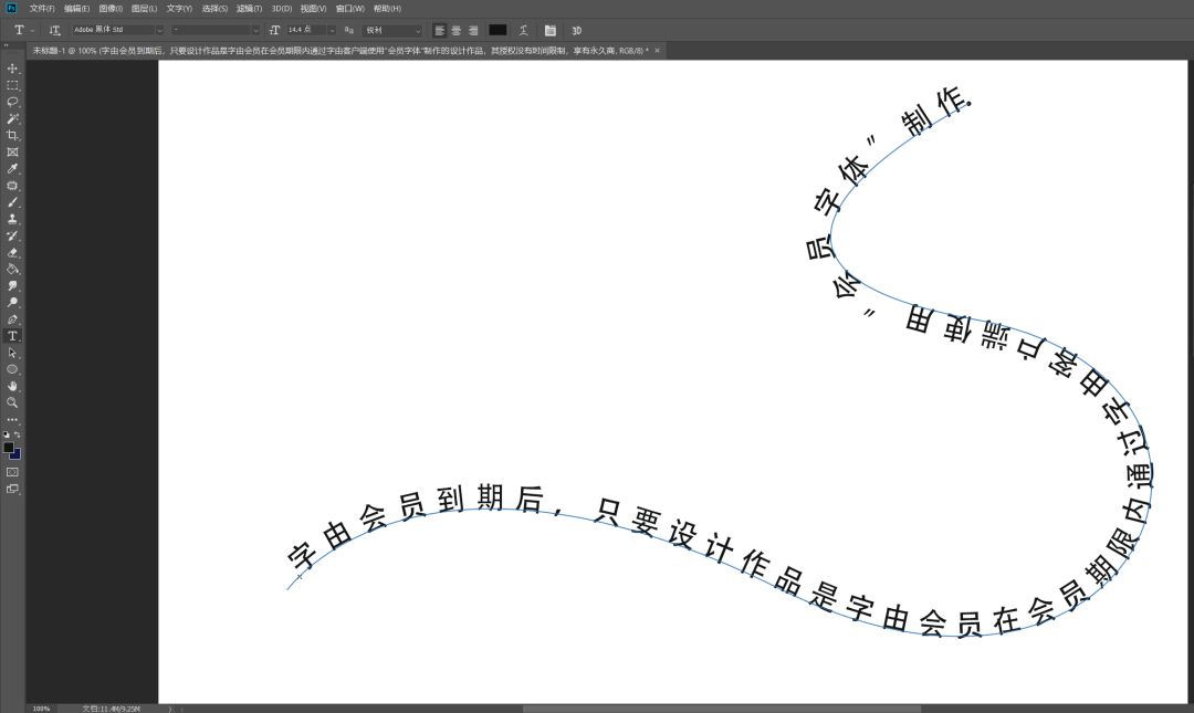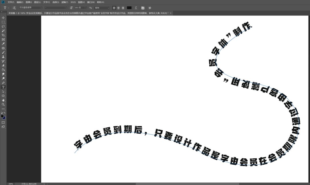 变成波浪线时输入文本,这里用的是汉仪铸字葫芦娃~