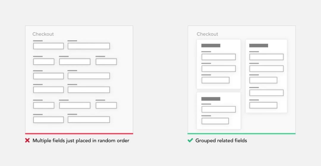 对于简化复杂页面的方法是用组件进行分组。在元素或元素组周围添加边框(创建公共区域)是创建与周围元素分离的简单方法。在格式塔心理学中有多种原则可以帮助我们优化界面如:接近性,相似性,连续性,闭合性和连通性。