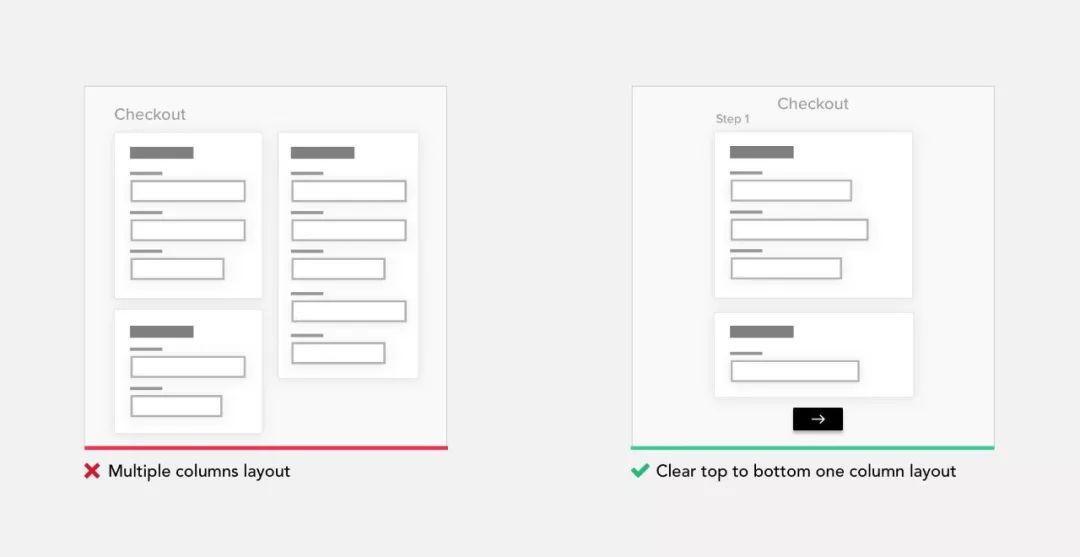 设计表单时,请使用一列布局而不是多列。一栏布局更容易填写,这样用户无需考虑接下来要填写的内容,只需沿着直线向下移动页面即可。