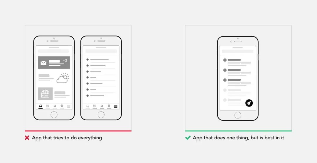 太多的产品试图为更多的用户做出更多的功能,每个人都想成为这个行业的瑞士军刀。如果你希望你的产品变得简单,你需要定义核心价值并确定该产品的真正用途。并不是每个产品都应该内置Facebook。