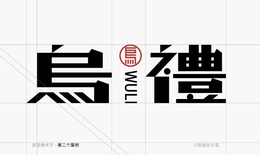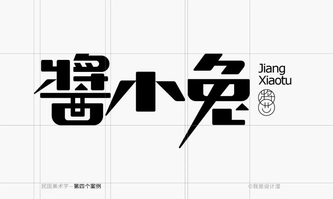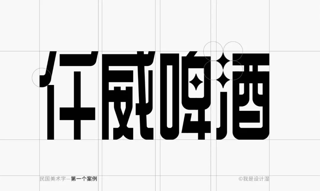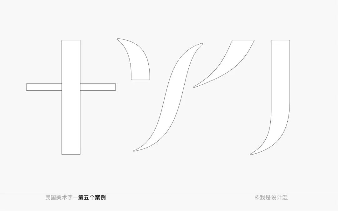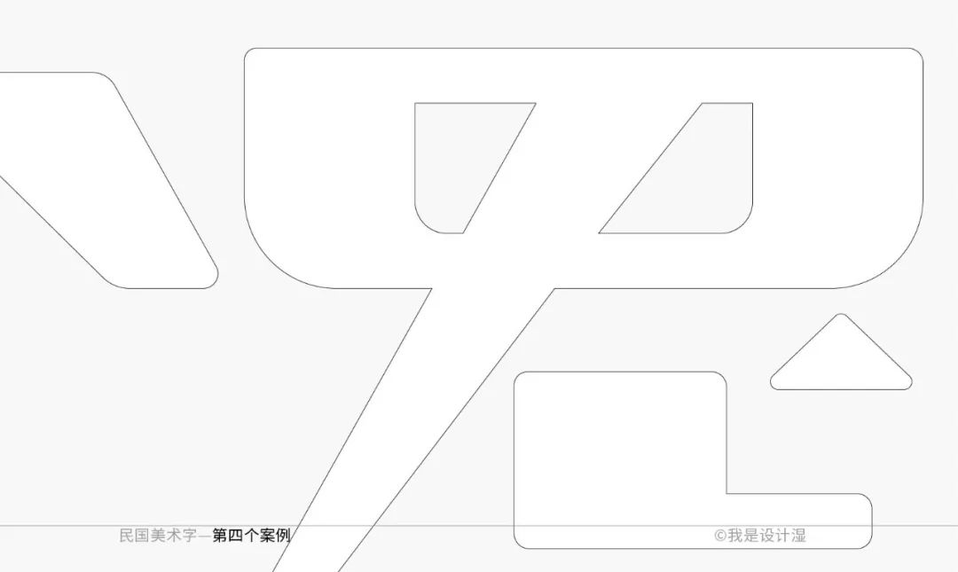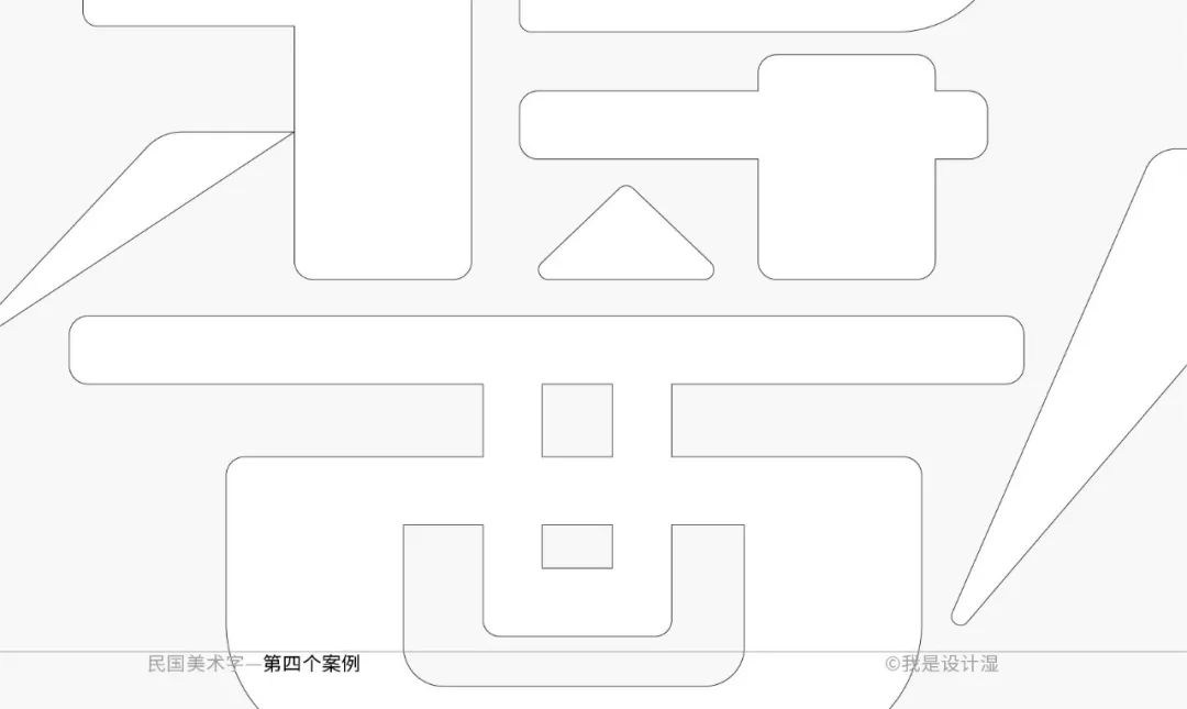这个字形的特征性也非常好,尽管细看的时候我们会觉得它基础笔画的处理不是那么的完全统一,但毕竟是美术字的范畴,整体的特征感受统一即可。