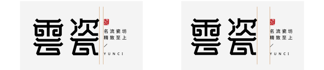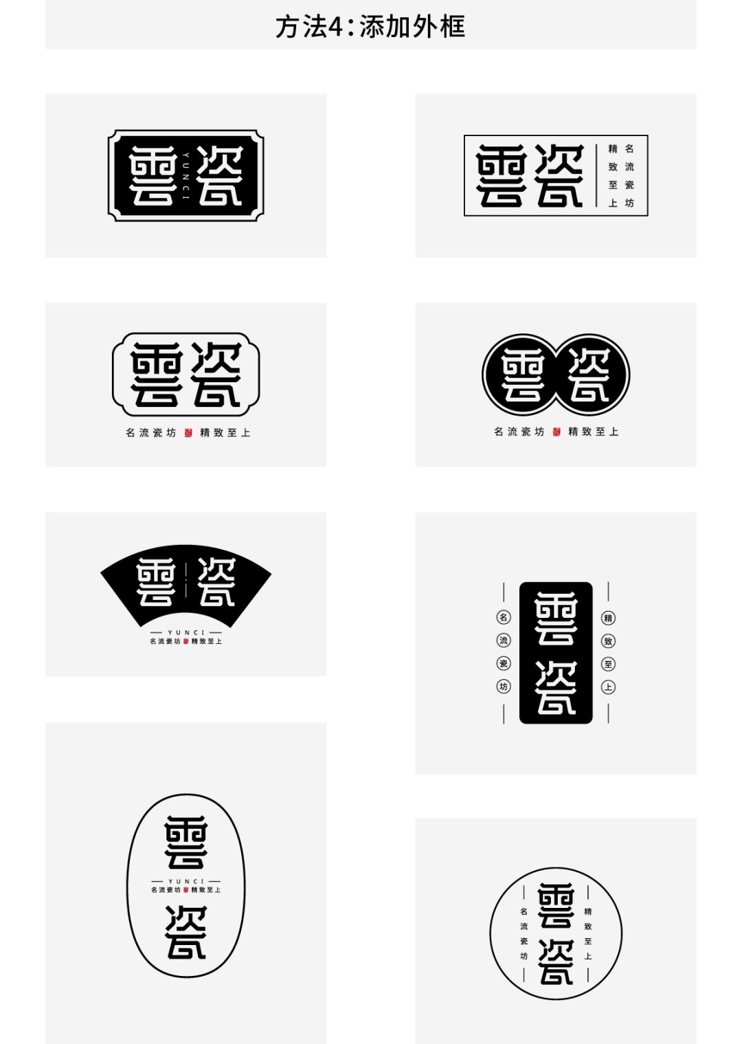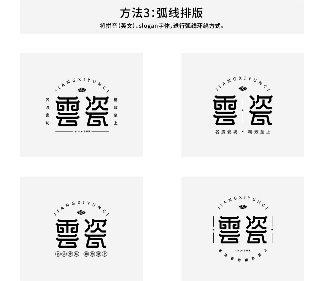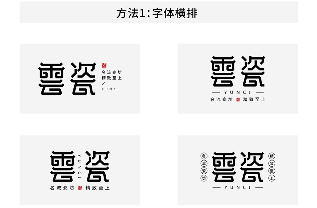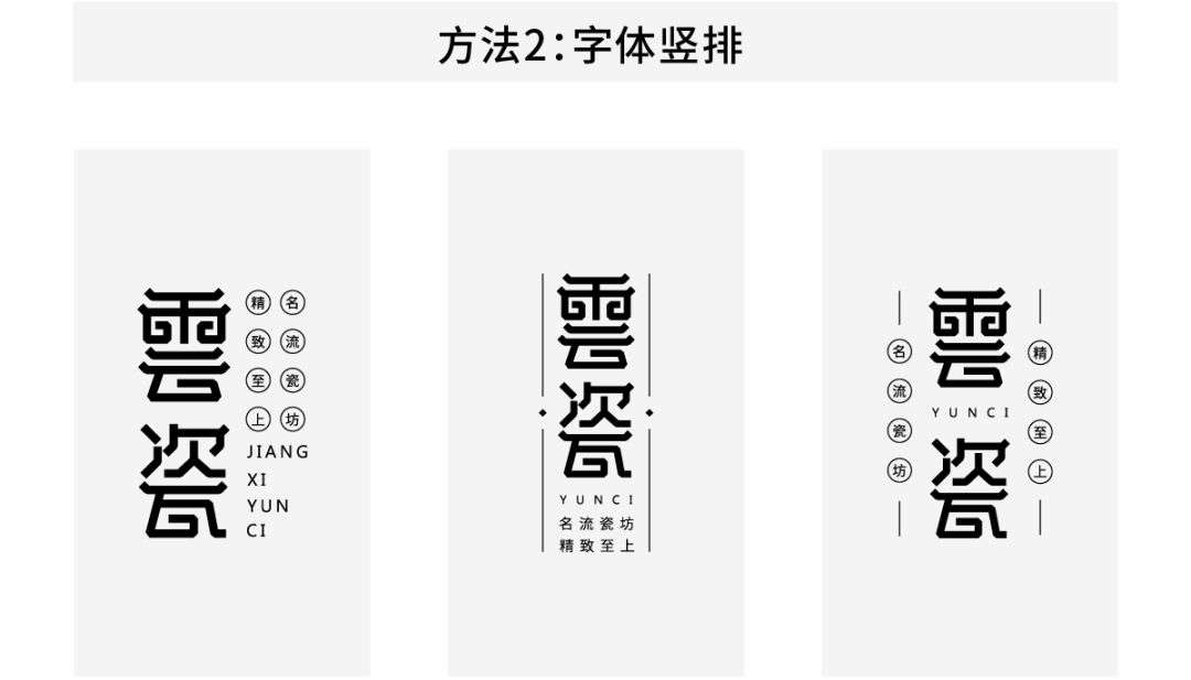 上面所列举的排版格式,是比较常见的,接下来,我们继续以“雲瓷”为例,尝试更多的排版可能性:
