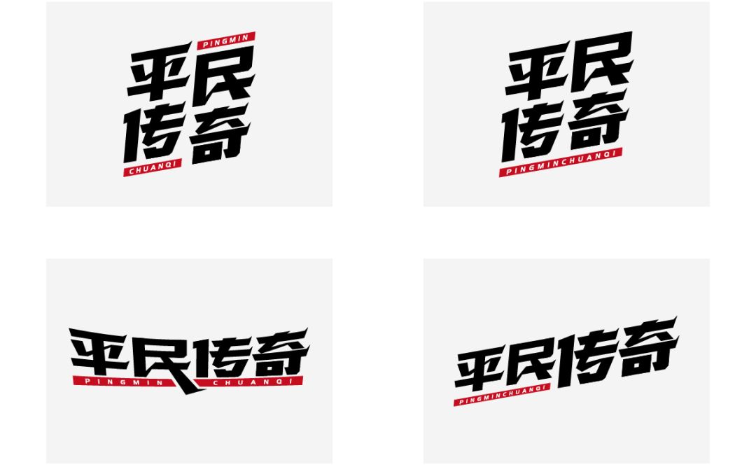 平民传奇,是一档电视节目,通过词意,我们很容易提炼出“力量”、“正义”、“震撼”等此类设计关键词。那么,左图的排版形式,就比较常规,略显平淡,而在右图的设计中,先看字体细节,“民”字,最后一笔,做了延伸处理,为本身平静的字体画面,增添了动感气息,同时,这也使得字体的特征更加鲜明。而在整体上,右倾斜的方式,虽然很常见,但这样的变化,必然会让字体画面更有劲、更带感。