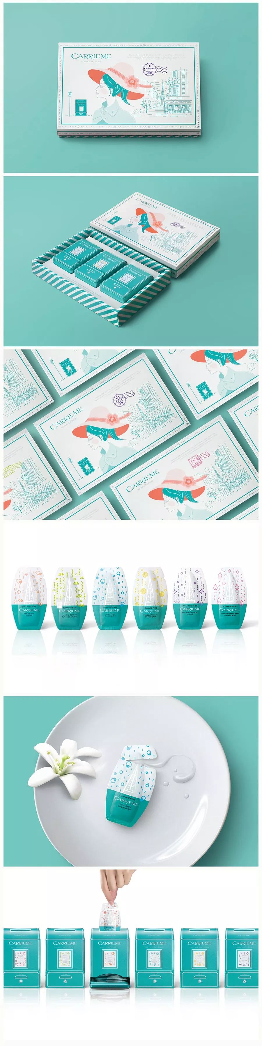 此系列以巴黎为背景故事,从旅行中所产生的心情与期待而命名,因此所产生的情绪去设计6种不同的视觉符号结合马卡龙色系、巴黎雨都印象、艾菲尔铁塔呈现法国浪漫及区分产品功效,营造清新脱俗的轻活感。