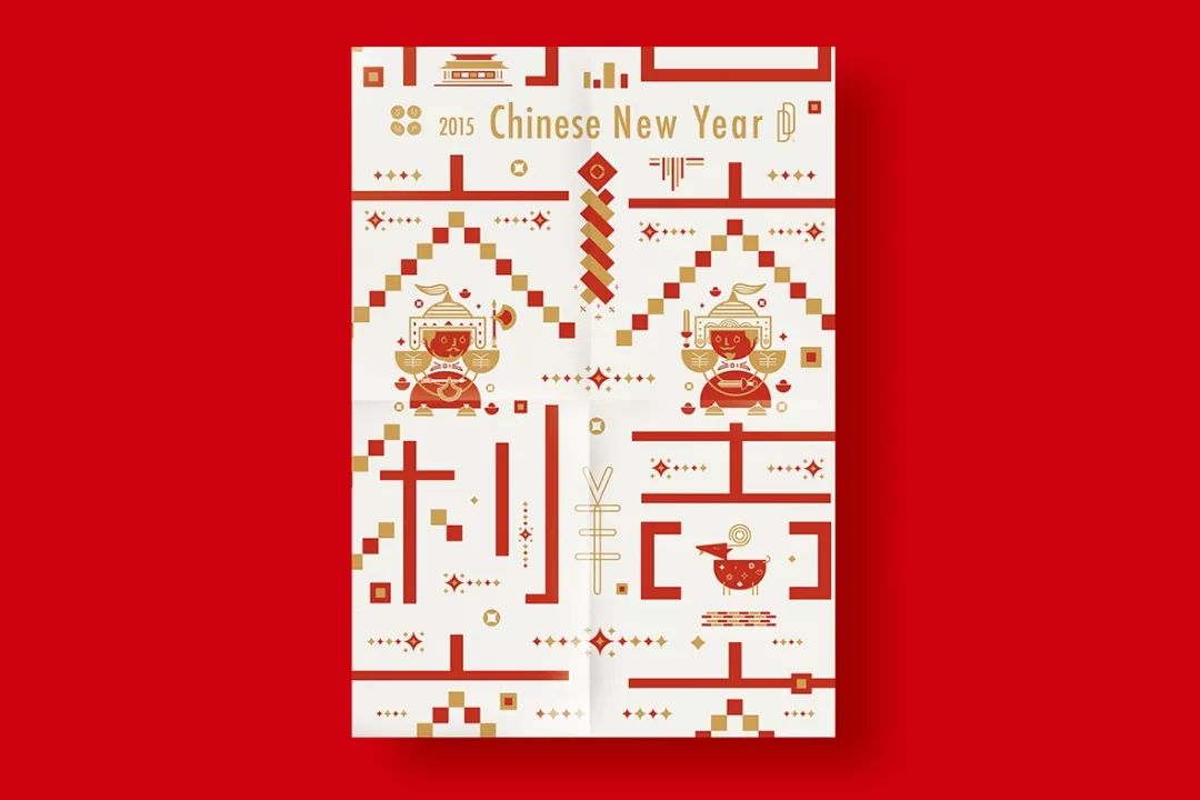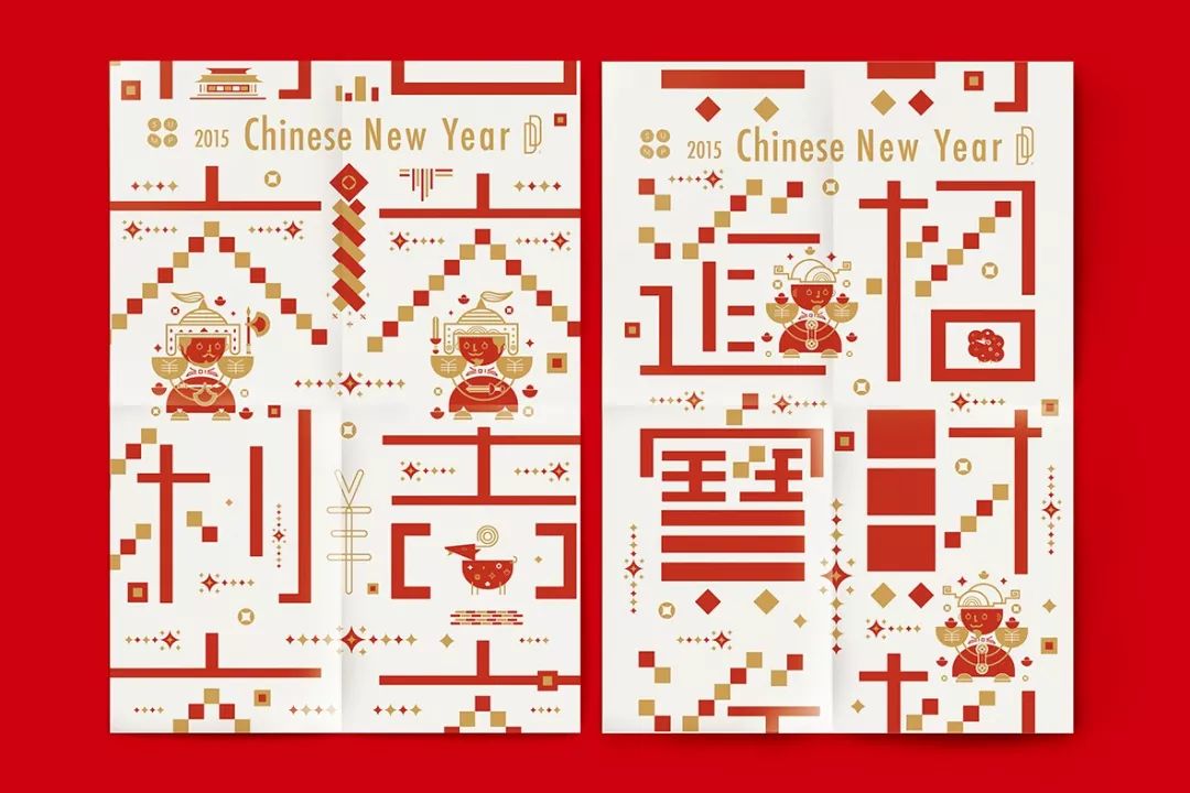 如同主题“ FUN 羊”希望羊年让羊有被”放羊“出来的意思,希望以好玩为构想。提出以新年常见的门神、财神等等的春联,结合生肖“羊”。以简约的几何造型去表现视觉,将所有的元素拆解后简化再设计。将汉字笔画结构拆解,重新以方格、线条的条件去设计,再赋予它为主视觉。
