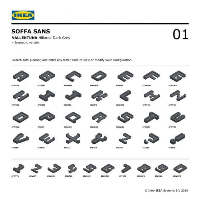 以“Design your own sofa”(设计你自己的沙发)在线工具衍生出的模因为灵感,宜家(IKEA)近日发布了名为“Soffa Sans”的免费字体。该工具允许客户设计自己心目中最理想的沙发布局和配置,可以在Vimle系列到Vallentuna模块化沙发系列中任意选择。