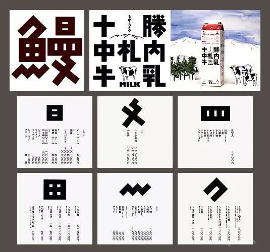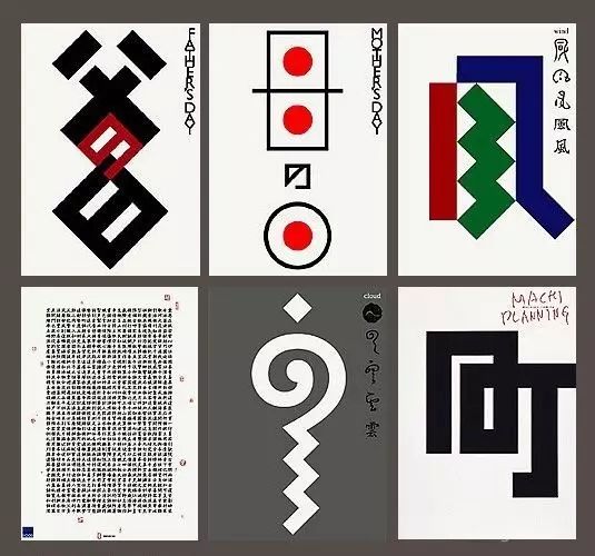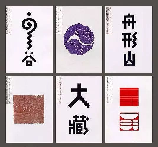 味岡伸太郎的字体设计,有一种极有张力的古朴与简洁,风格十分独特。粗看上去,一切似乎都那么的随意。特有风格的笔画元素、中宫结构、色彩搭配……