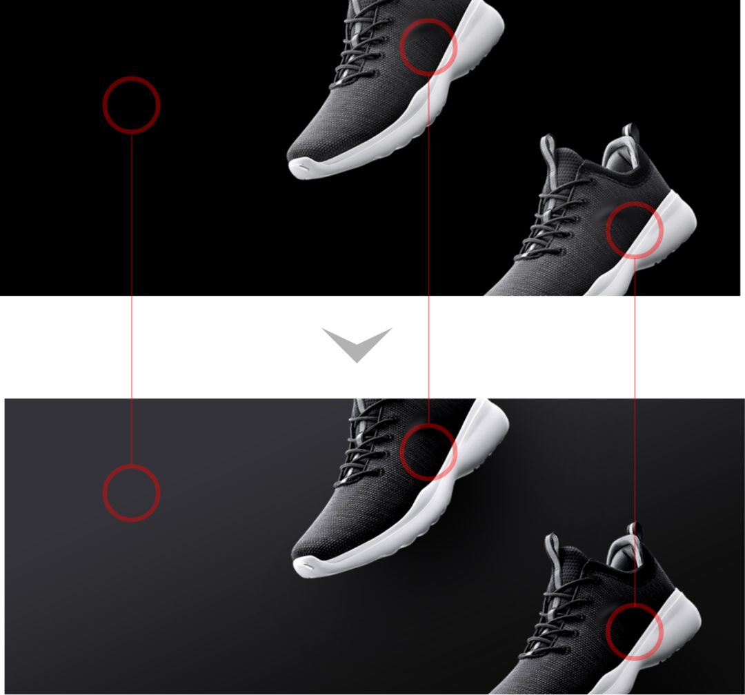 我们上面分析了鞋子的光影,发现它上面是有很柔的反射光的,因此尝试一下换成浅色的背景。