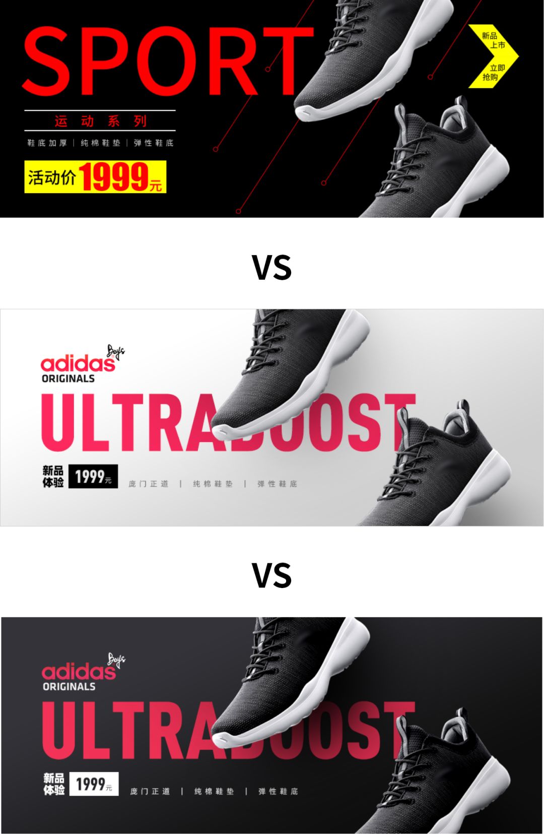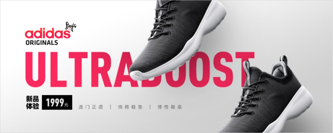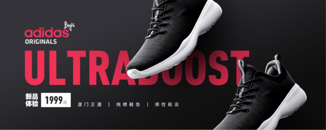 画面主体处理好,剩下就是文字排版,文案由原先的“Sport”这种空洞的词换成阿迪的黑科技"Ultraboost",一下就高大上了许多!
