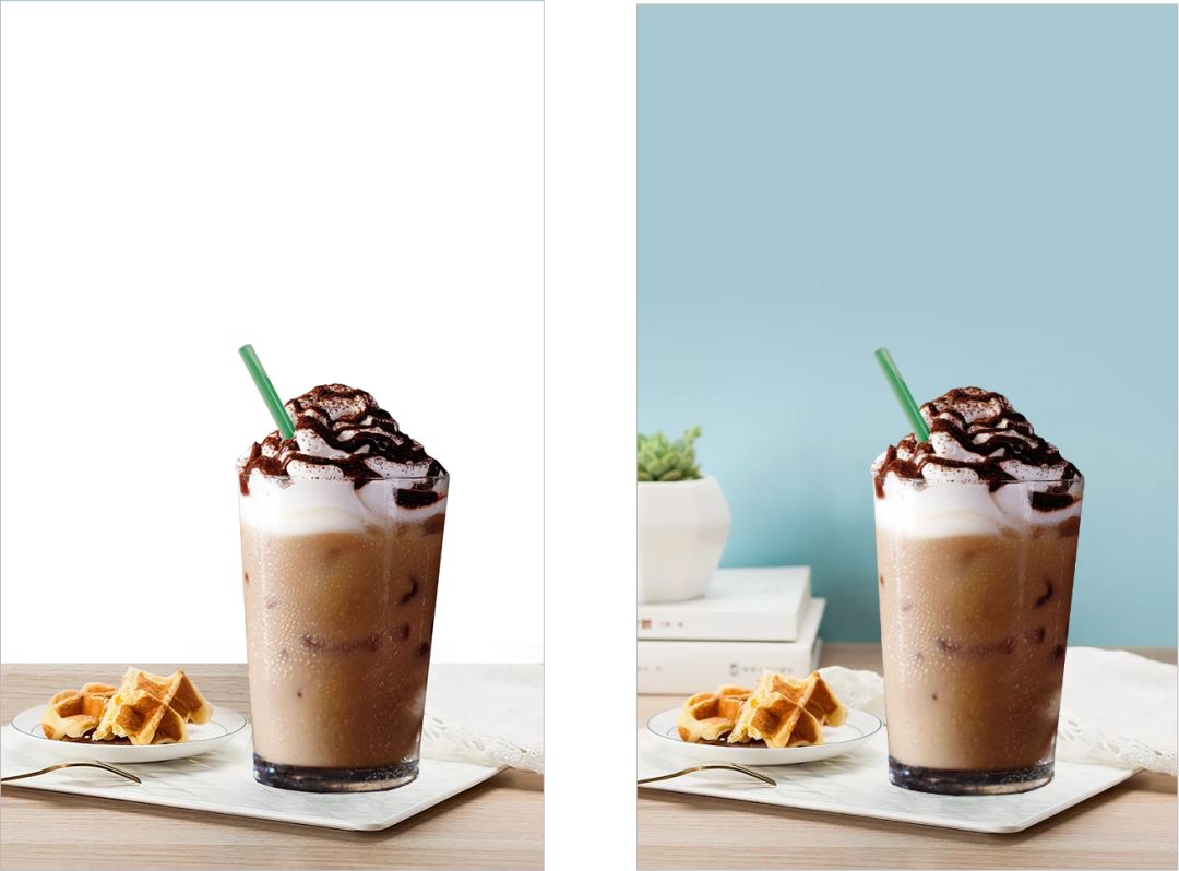 主图我从某巴克找来了一张咖啡的图,然后我们围绕这张咖啡的图来搭建一个类似上面的场景。