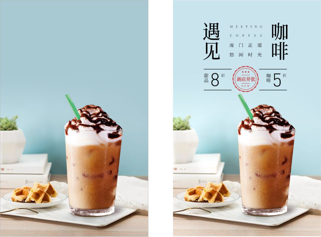 最后处理好光影、颜色等细节,再将文案排版好,一张文艺的咖啡海报就完工了!