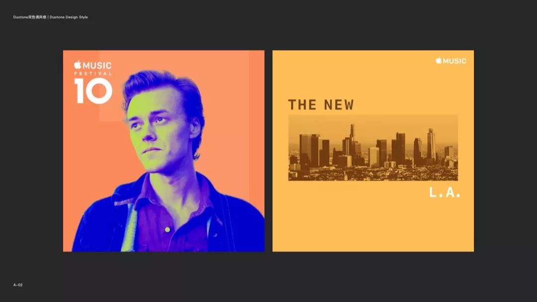Duotone双色调设计风格,是在国外的一些网站和App上经常会使用的风格,比如曾经的Spotify,以及现在的AppleMusic等比较前卫的产品上。这种风格看起来非常时尚大气,令人着迷。