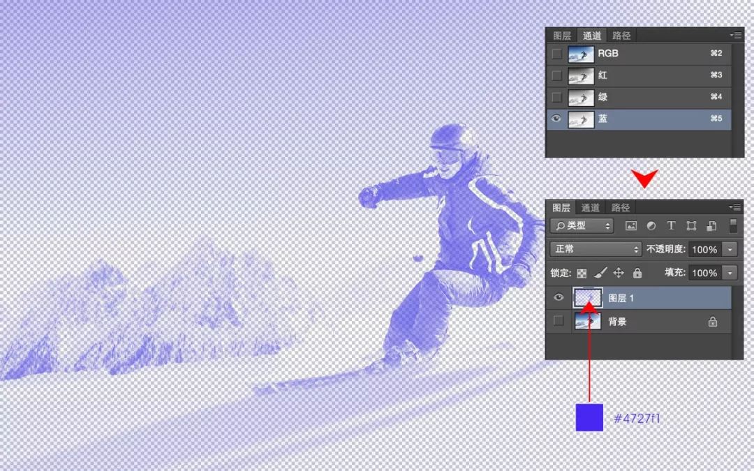 1.进入通道面板,选择人物与背景区分最明显的通道,这里我们选择蓝色通道。