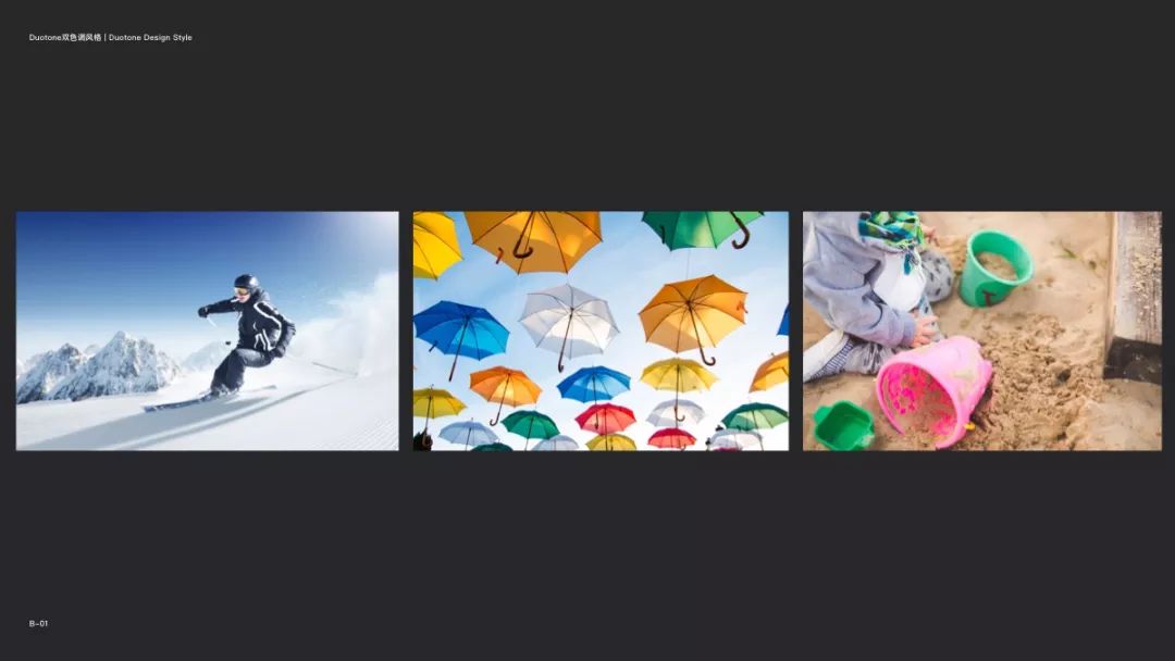 可以看到,基本上所有类型的照片,都可以处理成双色调风格。而主体物越清晰、色调越统一,则最终的效果会越好。最后再搭配上简单的排版,效果非常棒。
