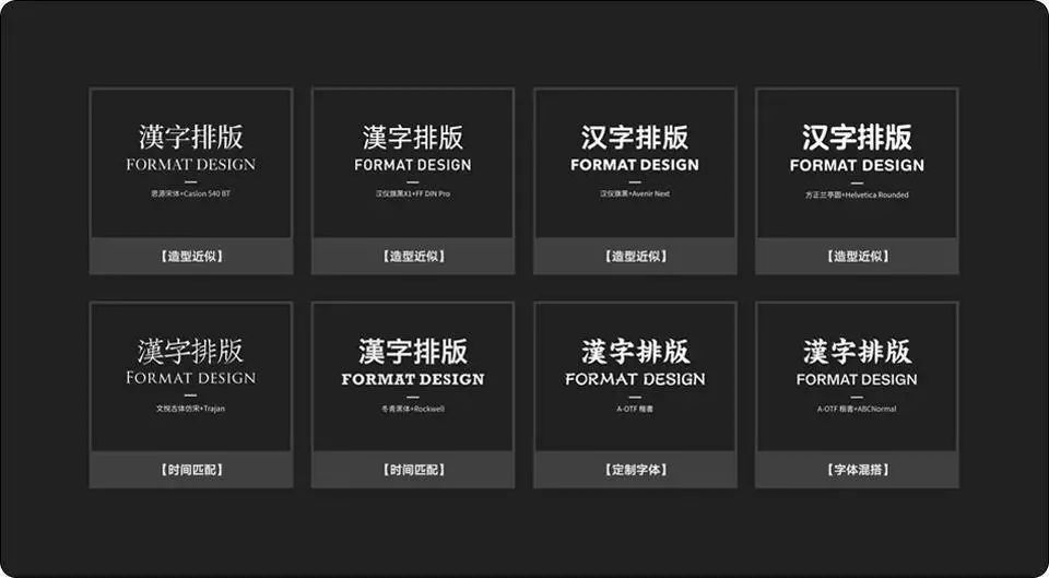通过上一步明确设计方向和作品风格之后,我们就可以通过这些想法来选择合适的中英文字体搭配。不同字体有不同的气质偏向,并且同类型字体的细节的变化,也会影响字体的风格变化。所以,对字体越了解,在选择和搭配时思路也会更加清晰。