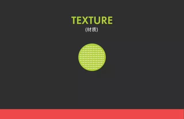 材质指的是物体的表面的质感,它可以使我们联想到我们触摸时的感觉。当一位艺术家想利用物体表面的对比去产生视觉兴趣时,他就会使用材质。