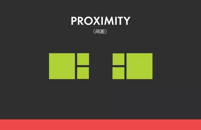 这是另外一种可以帮助我们有效地传达视觉信息的原理。通过简单的给予物体间距,我们可以告诉观众元素之间的关系。这个原理经常被用在海报和网页设计,但却适用于所有类型的视觉信息。