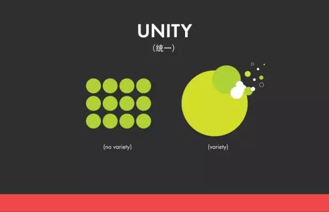 统一意味着,当所有元素都很一致,每一个部分就会在场景中结合得很好。没有任何一个单独的部分可以被视为比整体设计更重要。使用重复的原理以及平衡的配色方案是在设计中实现统一的简单途径。