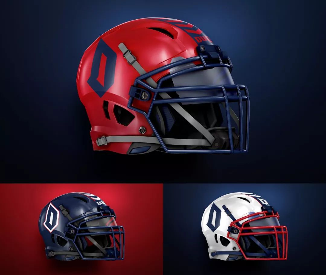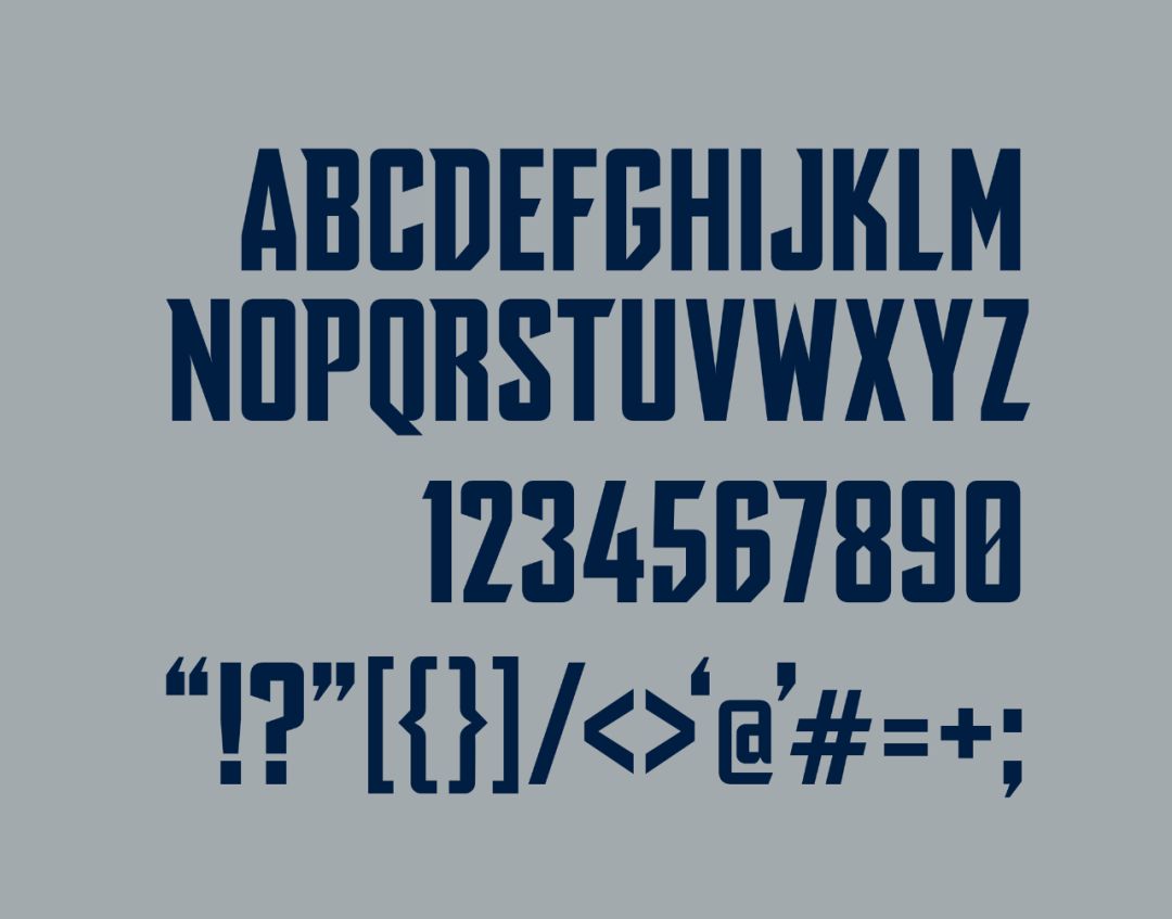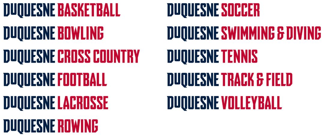 字体命名为“Bluff”是为了体现杜肯大学在匹兹堡独特的地理位置。这种具有侵略性的外观的定制字体,用来补充我们的标识和字体设计。运动员的号码设计在制服上,从而实现定制化。