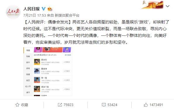 后来才知是老粉们的打榜大战,连人民日报都出来发声了~