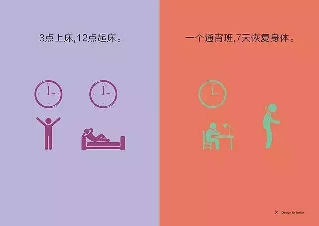 初级设计师3点上床,12点起床。高级设计师加一个通宵班,可能要一个礼拜恢复身体。(好吧,虽然年纪大了经验丰富了,可是体力一定不如咱小鲜肉好。)
