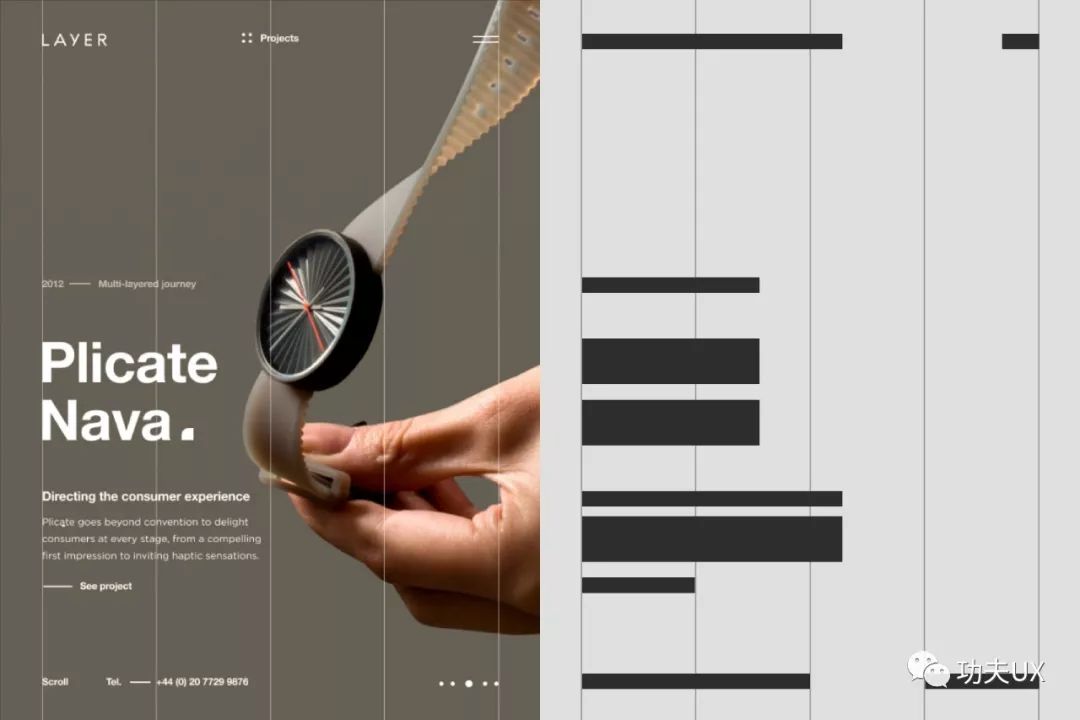 比如我们产品是奢侈品,那么整体排版设计风格一定是使用大网格,大空间去设计,字体纤细等。如果是简约现代呢?又或者母婴产品,科技产品,娱乐产品等等,每个会有一些特殊排版思路。所以了解你的设计目标,并确定设计原则。