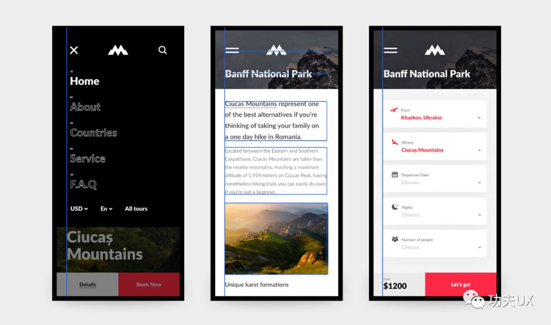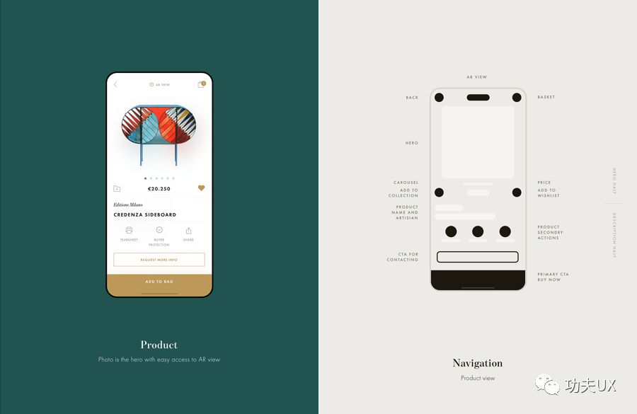 左边视觉界面,右边拆解原型出来,我们可以看到设计师也是通过元素合理分布使得界面整体平衡
