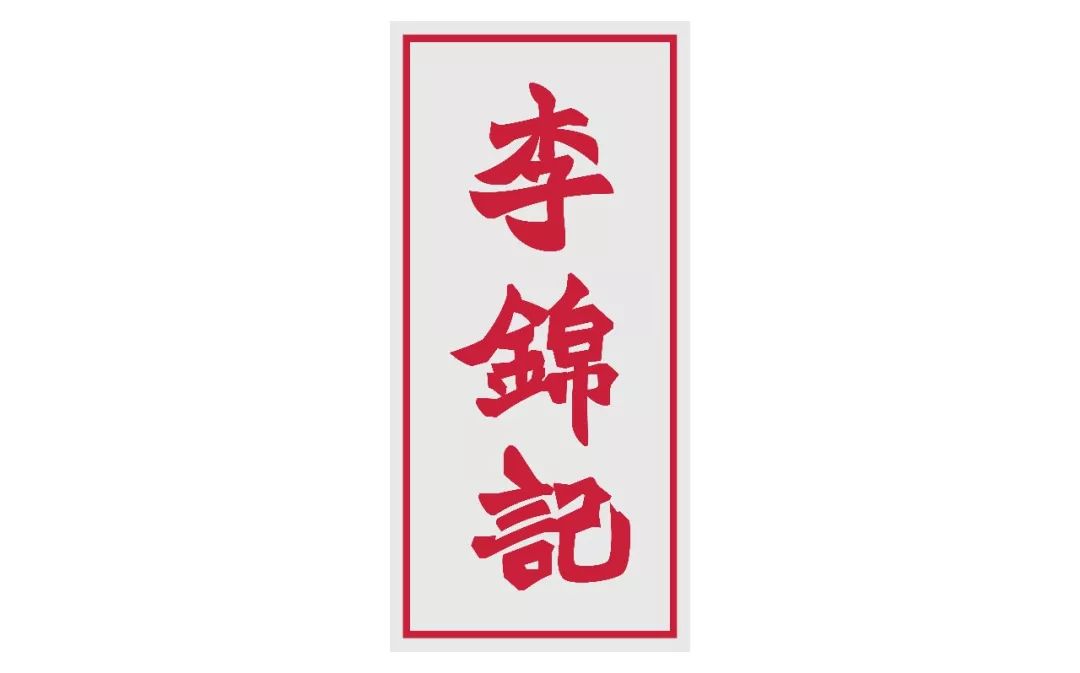 以“李锦记”为例可以看到“记”字第三横横画比较长,目的就是取得平衡,令字体更有力度和容易识别。此外倔强有力的竖弯钩也使得整个字体极具个性和识别性。