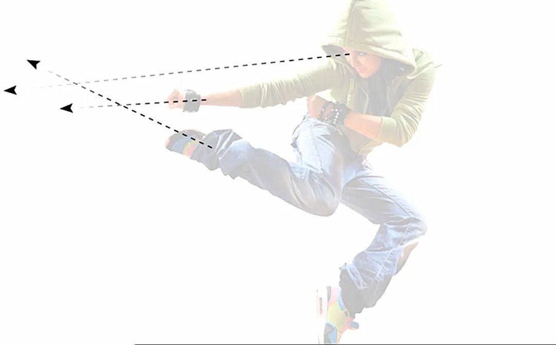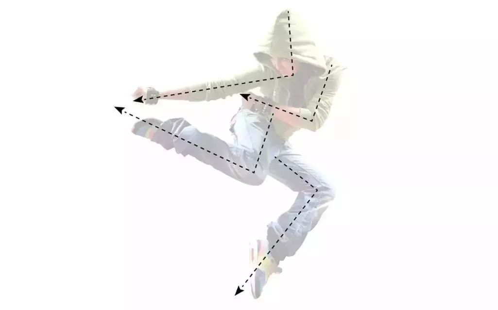 仔细观察,图中女孩舞动的手臂以及腿部的线条,你会发现,视线在不知不觉中开始跟随着这些假想线的方向移动。
