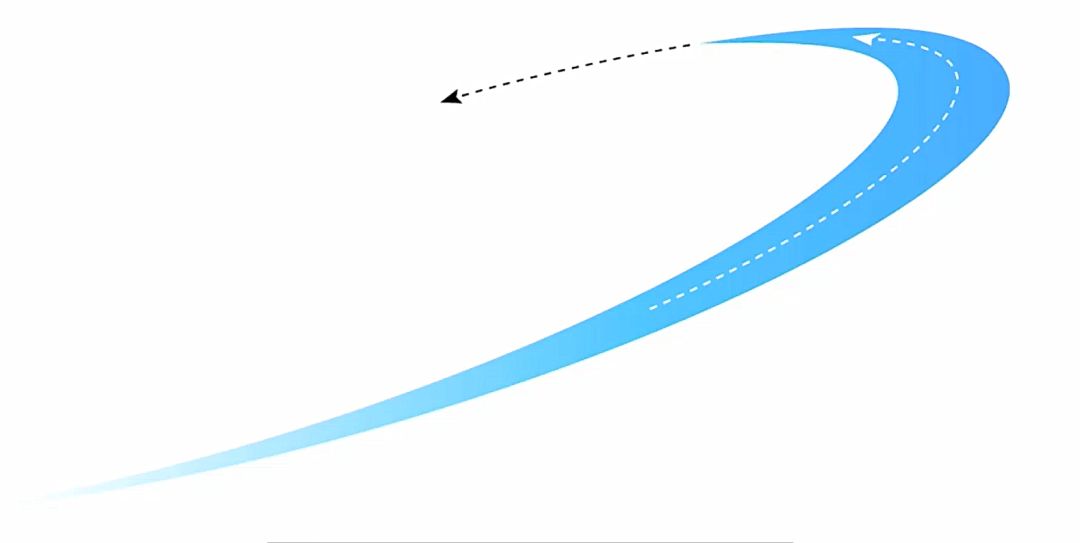 相对于聚合线来说,曲线的速度会更快。人们的目光不仅会随着曲线运动,还会在曲线末端的幻影中继续。并不会随着曲线的消失而立即收回视线。