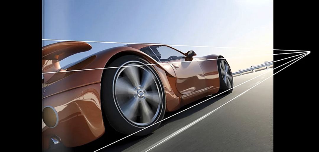 相比汽车在水平面上的状态来说,当特殊的视角形成了倾斜的汇聚线时,画面的速度感会更快。