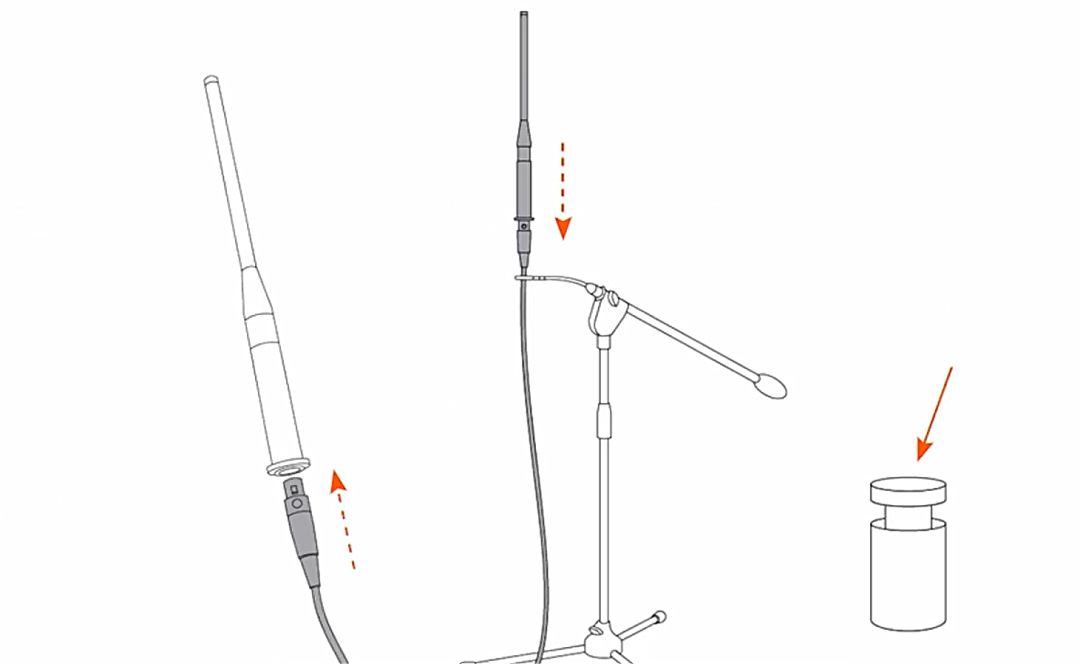 以左边为例,根据箭头的指向,两个原本分开的部分好像真的即将合并在一起。中间的麦克风也将卡入支架中去,而右侧的实线只作为这一部分的指示作用而已。