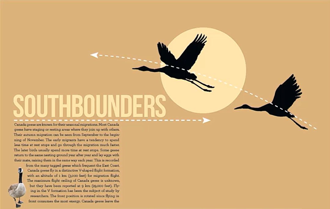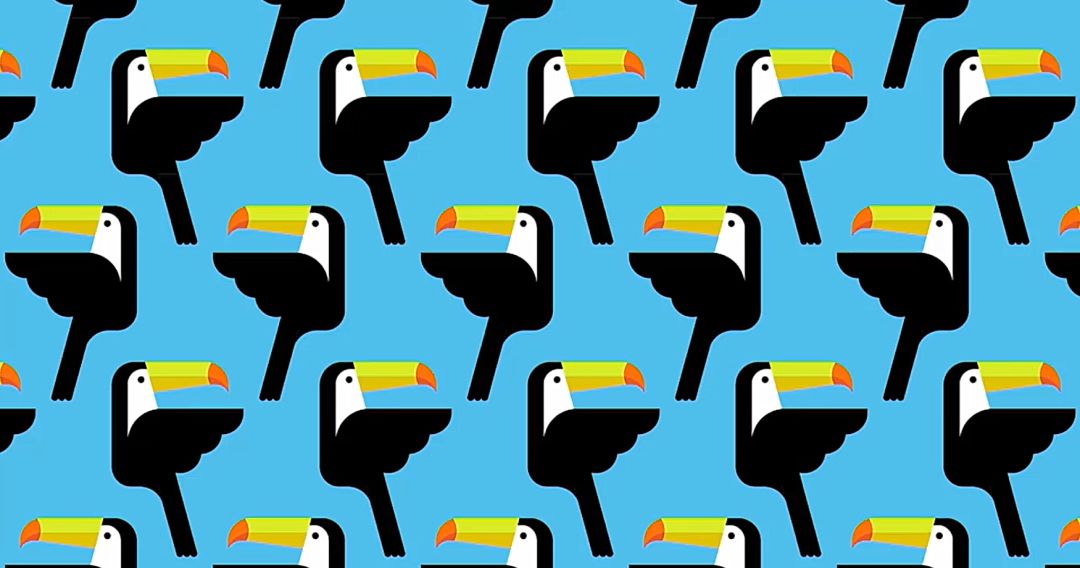 就像上图这样,一排排大嘴鸟面朝相反的方向,由于鸟的嘴巴就是一个类似于假想线的指示器。所以,它会让观看者在浏览时,不自觉的跟着这个指示器移动,向左看,向右看,向左看,向右看…