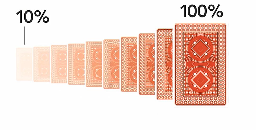 再或者,当纸牌越来越小,而每张卡片显示的宽度都相同,就会产生一条曲线。