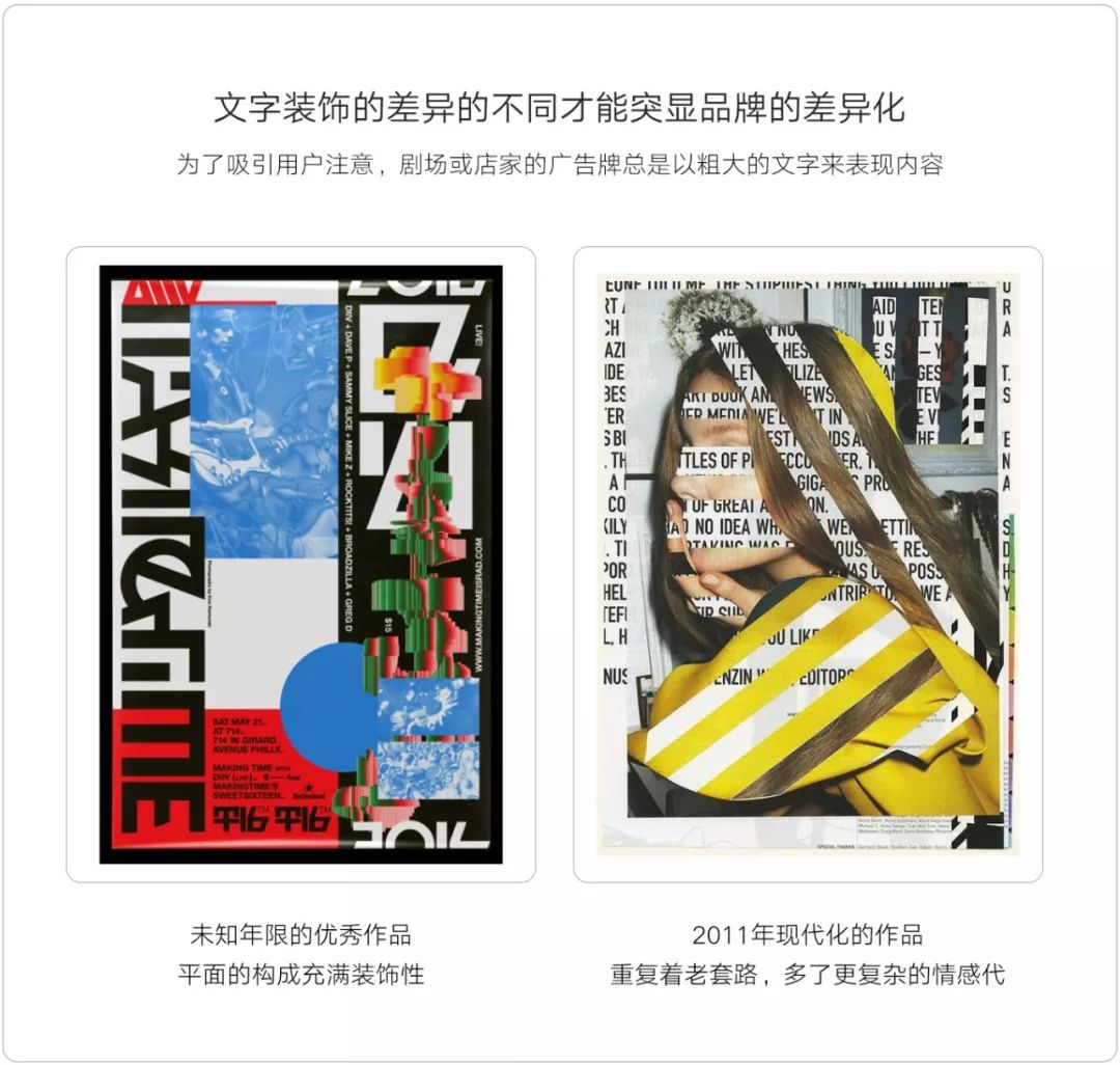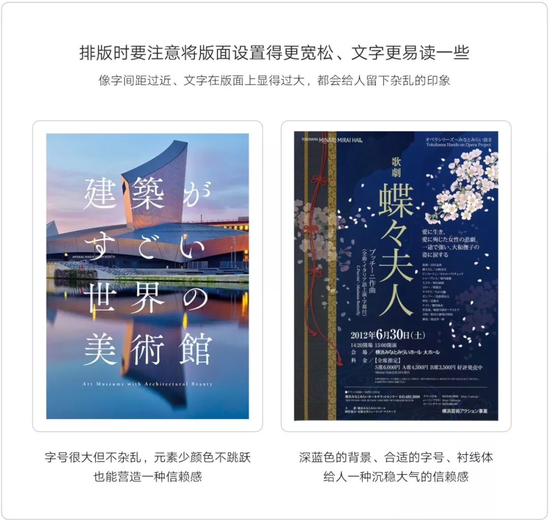 不论使用哪种文字设计,如果页面布局过于拥挤,整体都会看起来沉闷土气,所以要尽量力求精简。