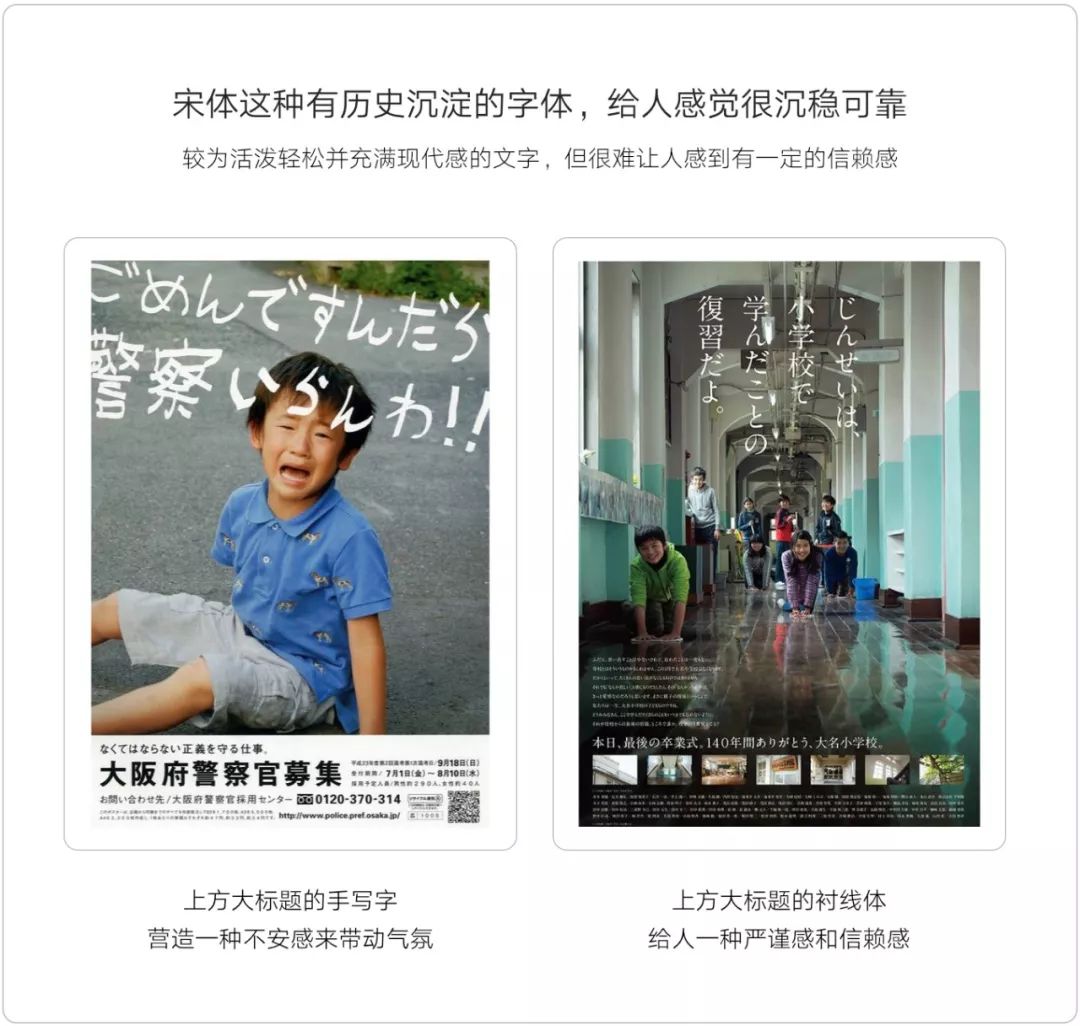 较为活泼并充满现代感的文字,在吸睛方面效果显著,但很难让人有一定的信赖感。所以中文最好采用宋体这种有历史沉淀的字体,给人感觉沉稳可靠,同理西文采用衬线体。