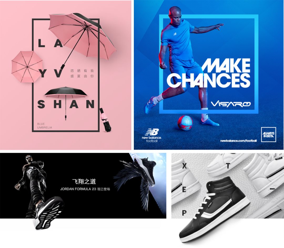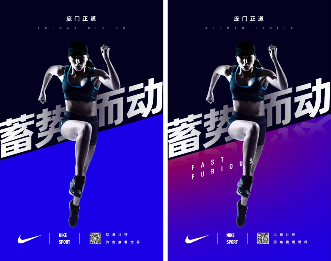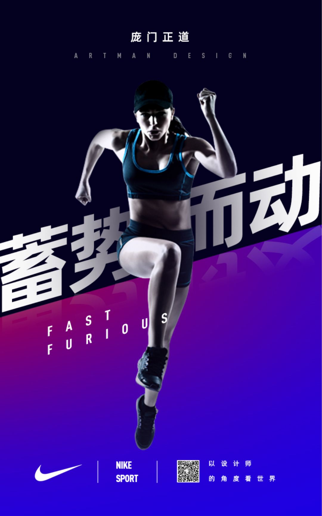 富有动感的画面,可以更加的吸引用户的眼球,能更快速的将重要信息传达给用户。在运动、男性类的设计主题中经常会用到。