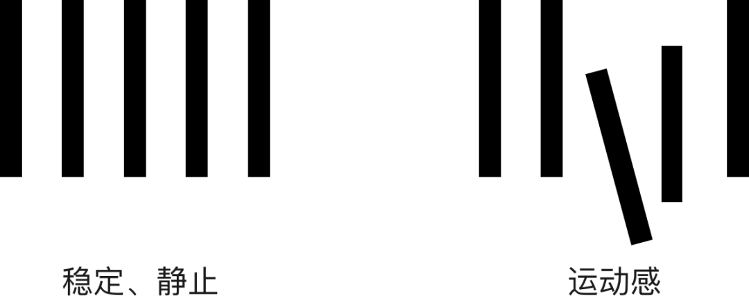 那相对应的,不整齐、不规则就可以造成不稳定,从而形成动感。