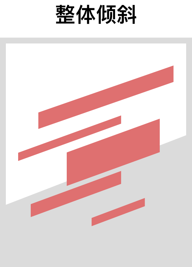 整体倾斜即文案和背景全都是倾斜的,这种方式的视觉冲击力是最强的,但同时也是比较难掌握的一种方式。把控不好,容易导致整个画面过于凌乱。